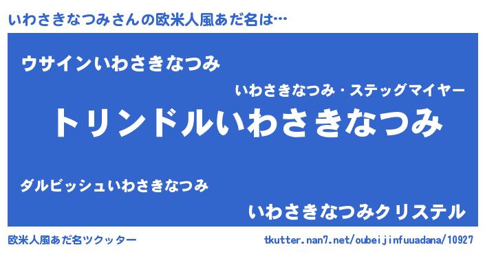 | 男性向けラノベタイトル風あだ名 | 『いわさきなつみ~年齢イコール彼女いない歴の魔法使い~』 |