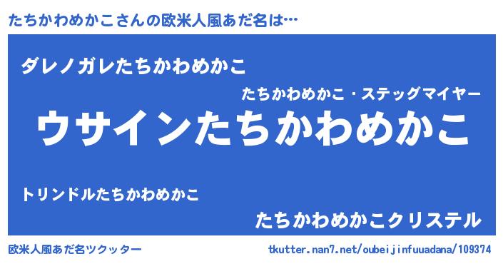 | 男性向けラノベタイトル風あだ名 | 『たちかわめかこの嫁は女の子じゃないと思った?』 |