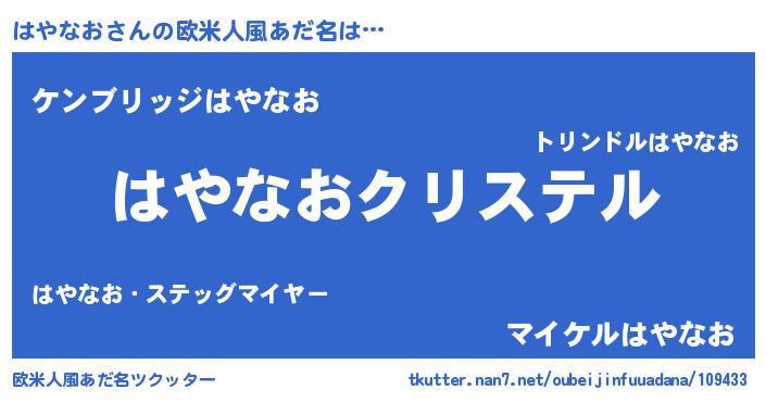 | 意味不明あだ名 | 『はやなおフォーエバー』『自称はやなお』 |