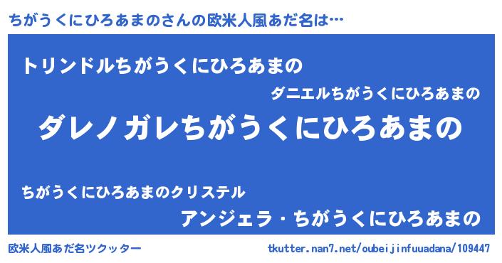 | 意味不明あだ名 | 『住所不定無職ちがうくにひろあまの(86歳)』 |