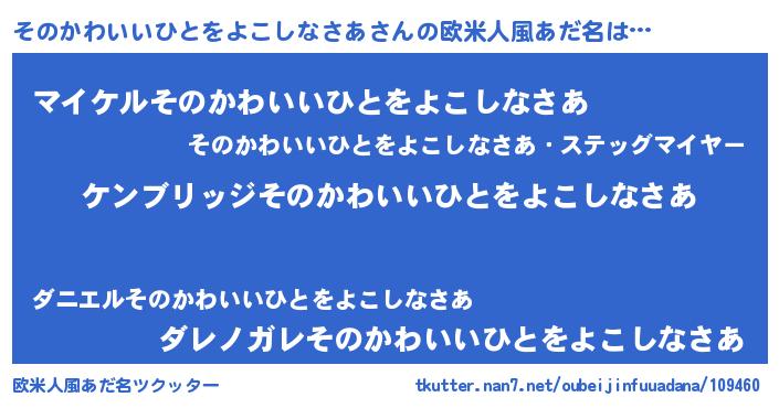 | 男性向けラノベタイトル風あだ名 | 『Re:そのかわいいひとをよこしなさあから始める異世界生活』 |
