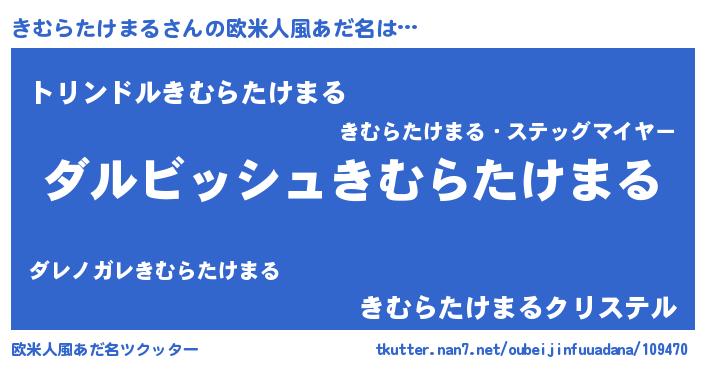 | ヘコむあだ名 | 『きむらたけまる(笑)』『なまこ酢』 |
