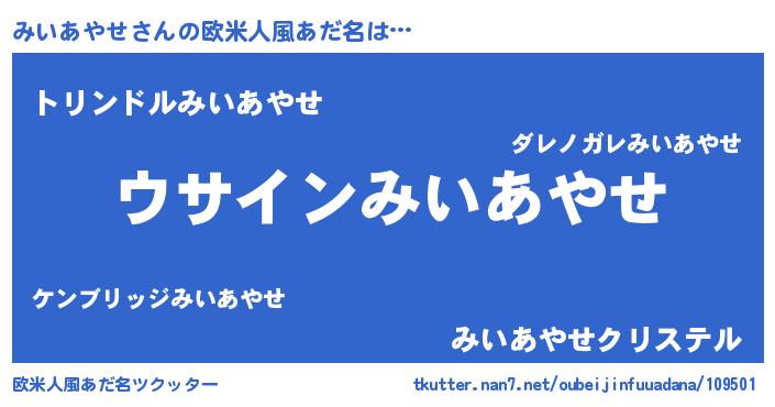 | 男性向けラノベタイトル風あだ名 | 『みいあやせの嫁は女の子じゃないと思った?』 |