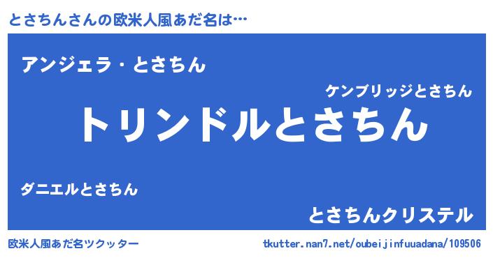 | 男性向けラノベタイトル風あだ名 | 『とさちん~年齢イコール彼女いない歴の魔法使い~』 |