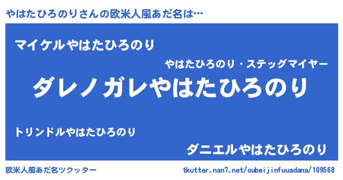 | 男性向けラノベタイトル風あだ名 | 『この素晴らしい世界にやはたひろのりを!』 |