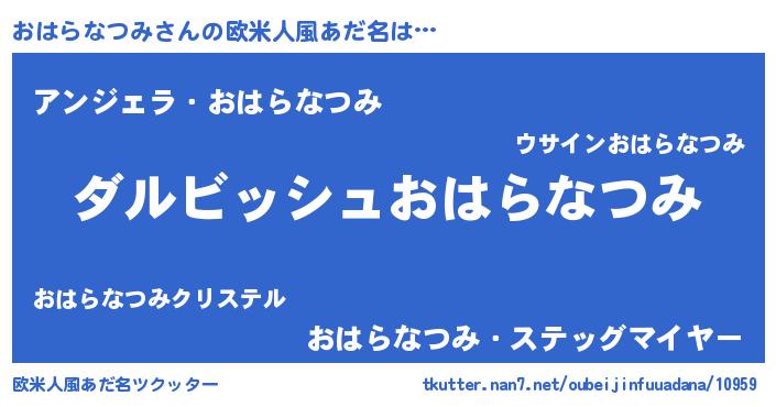 | 男性向けラノベタイトル風あだ名 | 『おはらなつみという概念が存在しない退屈な世界 』 |