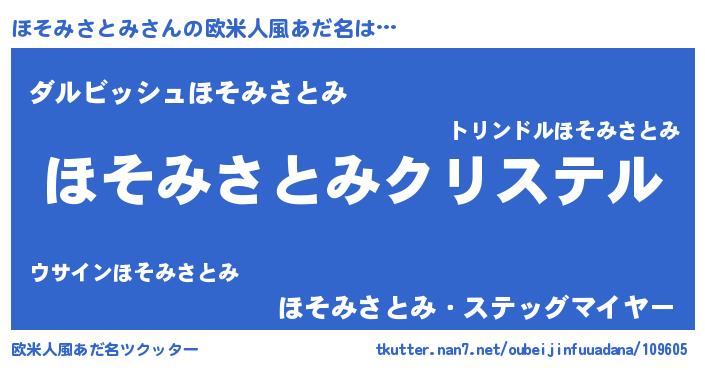 | 男性向けラノベタイトル風あだ名 | 『やはりほそみさとみの青春ラブコメはまちがっている 』 |