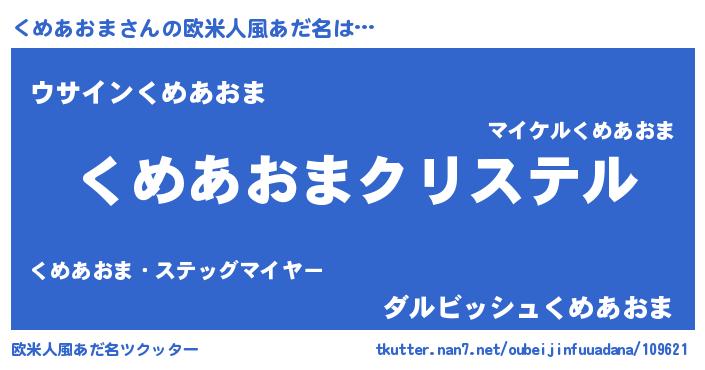 | 女子向けラノベタイトル風あだ名 | 『くめあおまの婚約者』 |