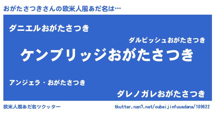 | 男性向けラノベタイトル風あだ名 | 『Re:おがたさつきから始める異世界生活』 |