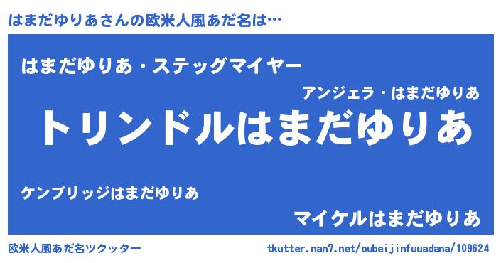 | 男性向けラノベタイトル風あだ名 | 『はまだゆりあ~年齢イコール彼女いない歴の魔法使い~』 |
