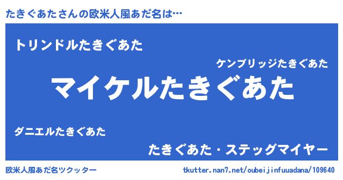 | 男性向けラノベタイトル風あだ名 | 『タキグアタアートオンライン』 |