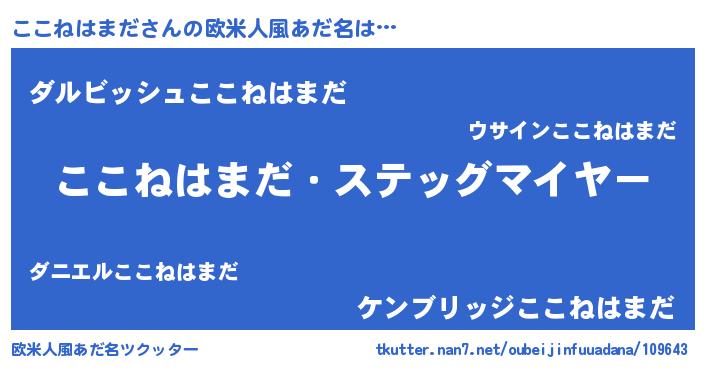 | 胡散臭い通販商品みたいなあだ名 | 『絶対に幸福をもたらす健康食品…その名も「ここねはまだ」』 |