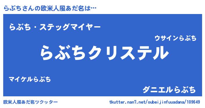 | ヒーロー風カッコイイあだ名 | 『ウルトラらぶちマン』『愛の使者らぶち』 |