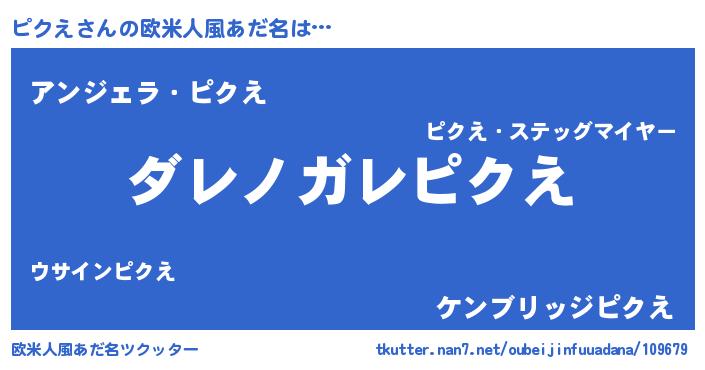 | ポケモン風あだ名 | 『ピークイ』『ピクゴンZ』『ヒピクエ』 |