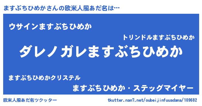 | 男性向けラノベタイトル風あだ名 | 『魔弾の王とますぶちひめか』 |