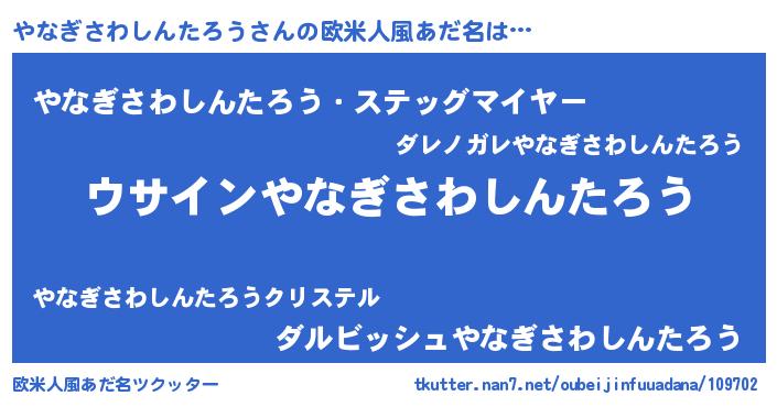 | 男性向けラノベタイトル風あだ名 | 『やなぎさわしんたろうの嫁は女の子じゃないと思った?』 |