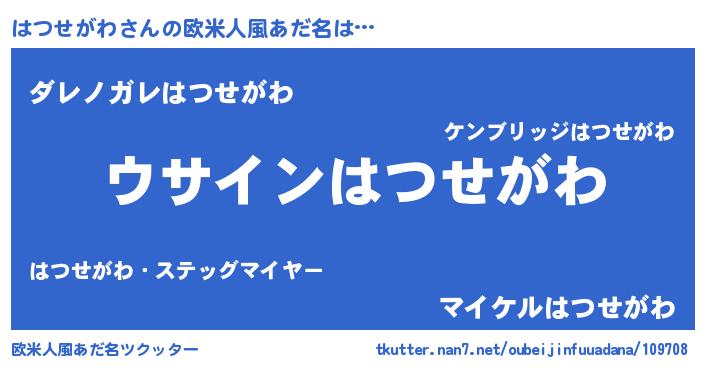 | 男性向けラノベタイトル風あだ名 | 『はつせがわの嫁は女の子じゃないと思った?』 |