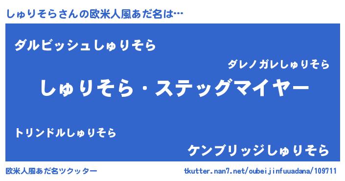 | 男性向けラノベタイトル風あだ名 | 『うちのしゅりそらが世界を掌握している!』 |