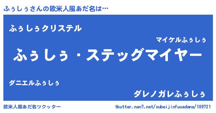 | 男性向けラノベタイトル風あだ名 | 『うちのふぅしぅが世界を掌握している!』 |