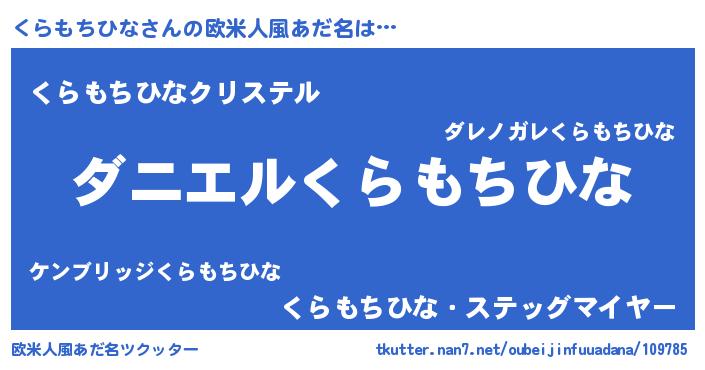 | 男性向けラノベタイトル風あだ名 | 『おまえをオタクにしてやるから、俺をくらもちひなにしてくれ! 』 |