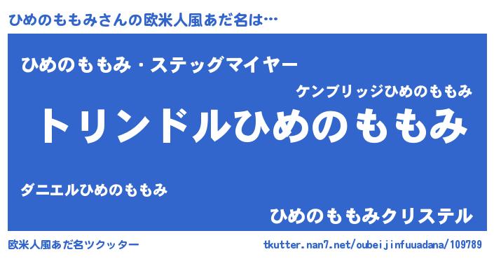 | 男性向けラノベタイトル風あだ名 | 『ヒメノモモミスレイヤー』 |
