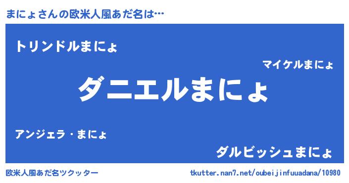 | 女子向けラノベタイトル風あだ名 | 『死神まにょの再婚』『まにょの契約王妃』 |