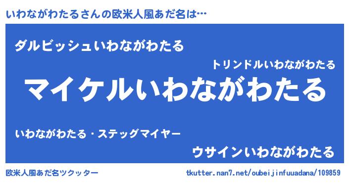 | 男性向けラノベタイトル風あだ名 | 『イワナガワタルアートオンライン』 |