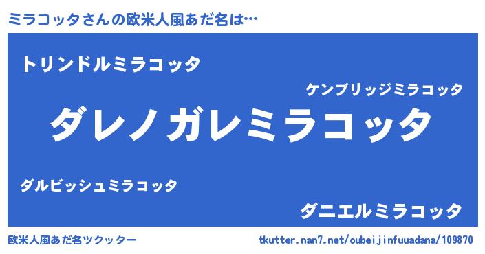 | 意味不明あだ名 | 『住所不定無職ミラコッタ(5歳)』 |