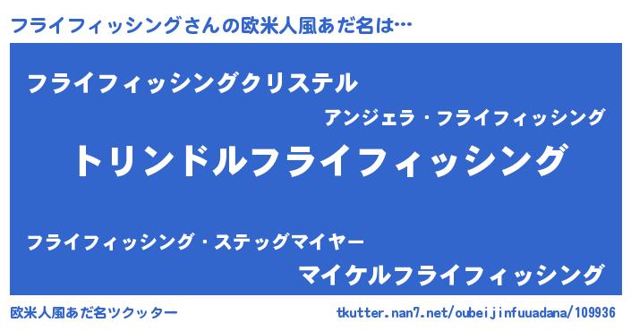 | 女子向けラノベタイトル風あだ名 | 『フライフィッシングの玉の輿計画!』 |