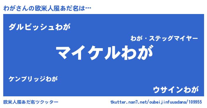 | ポケモン風あだ名 | 『ワガチュウ』『ゼニワガ』『ヒワガ』 |