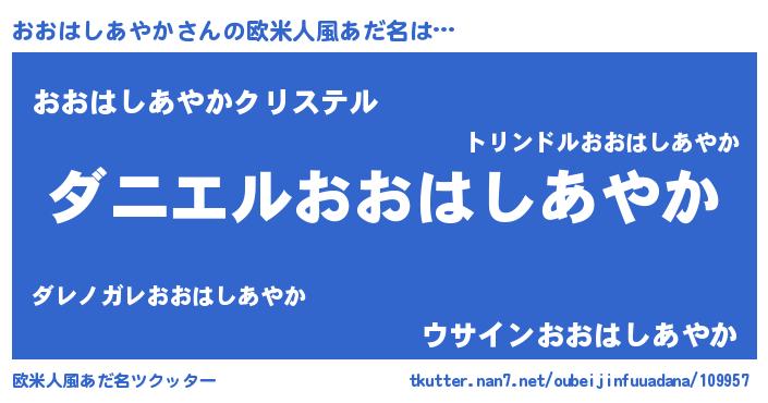 | 男性向けラノベタイトル風あだ名 | 『おまえをオタクにしてやるから、俺をおおはしあやかにしてくれ! 』 |