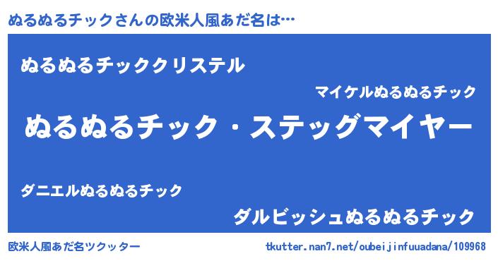 | 意味不明あだ名 | 『ぬるぬるチックフォーエバー』 |