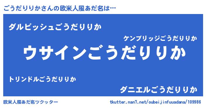 | 男性向けラノベタイトル風あだ名 | 『ごうだりりかの嫁は女の子じゃないと思った?』 |