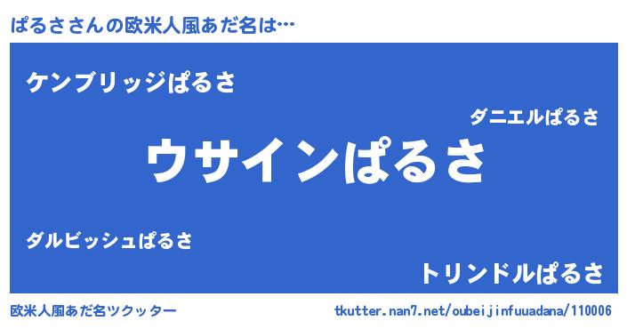 | 意味不明あだ名 | 『とにかく怪しいぱるさ』『自称ぱるさ』 |