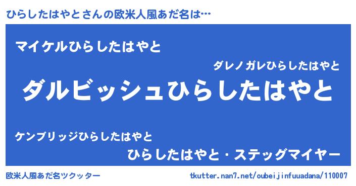 | 意味不明あだ名 | 『永久保存ひらしたはやと』 |