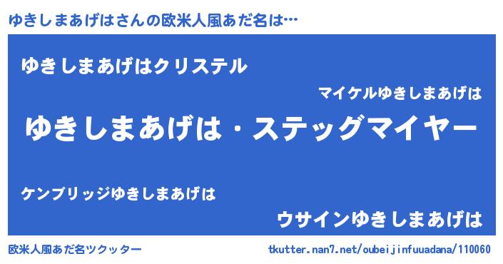 | 意味不明あだ名 | 『ゆきしまあげはフォーエバー』 |