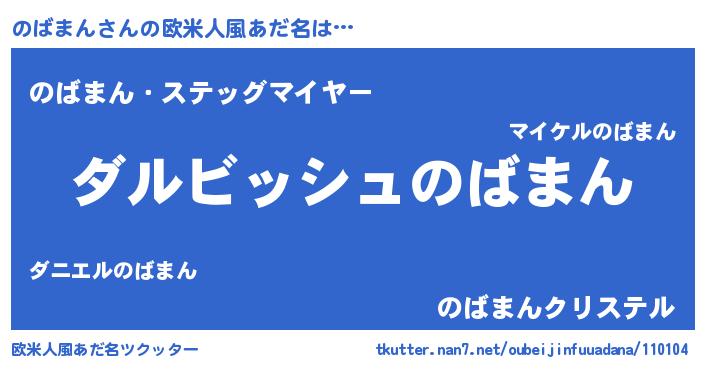 | ヒーロー風カッコイイあだ名 | 『ネオノバマン』『ウルトラのばまんマン』 |