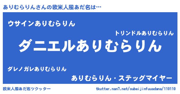 | 男性向けラノベタイトル風あだ名 | 『ノーゲーム・ノーアリムラリン』 |