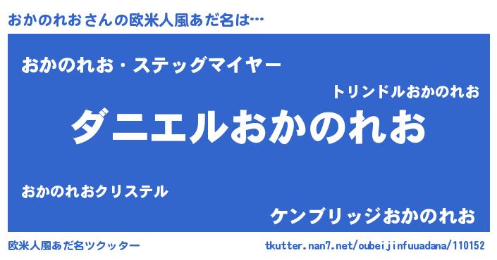 | 男性向けラノベタイトル風あだ名 | 『おまえをオタクにしてやるから、俺をおかのれおにしてくれ! 』 |