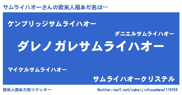 | 意味不明あだ名 | 『住所不定無職サムライハオー(10歳)』 |