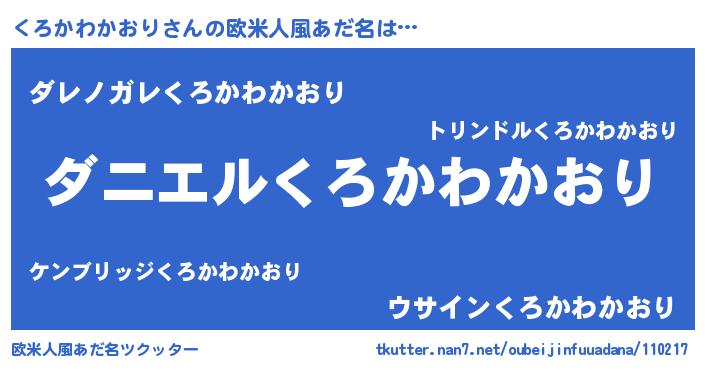 | ヘコむあだ名 | 『くろっ子』『くろかわかおり(震え声)』 |