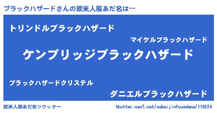 | 女子向けラノベタイトル風あだ名 | 『闇のブラックハザード』 |