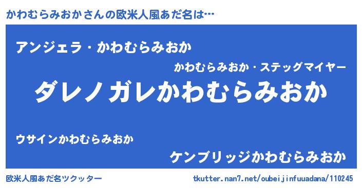 | 女子向けラノベタイトル風あだ名 | 『乙女ゲームの破滅フラグしかない悪役かわむらみおかに転生してしまった…』 |