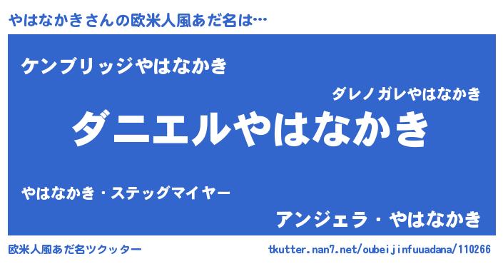 | ヘコむあだ名 | 『やはなかき(苦笑)』『やはふぇ~』 |