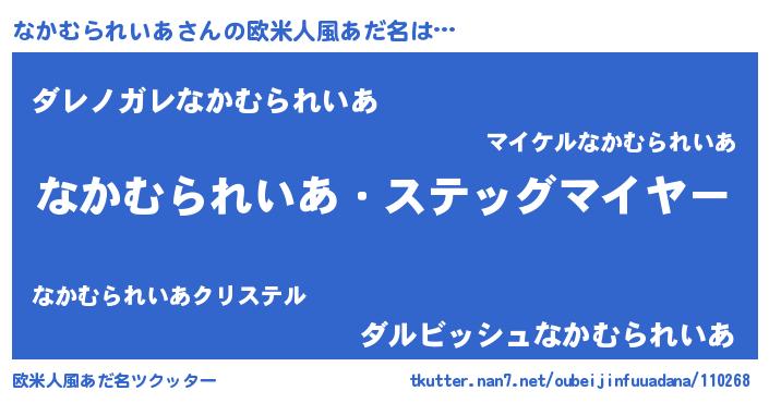 | ヘコむあだ名 | 『なかむられいあ(爆)』『なかっふぃ~』 |