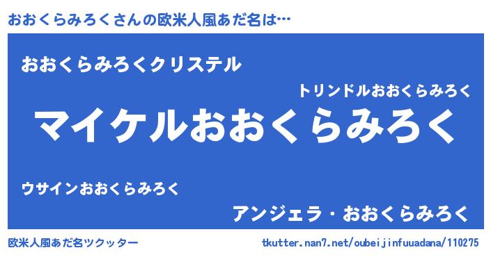| 男性向けラノベタイトル風あだ名 | 『おおくらみろくの憂鬱』 |