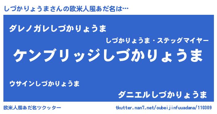 | ヘコむあだ名 | 『しづぷりん』『しづかりょうま(遠い目)』 |