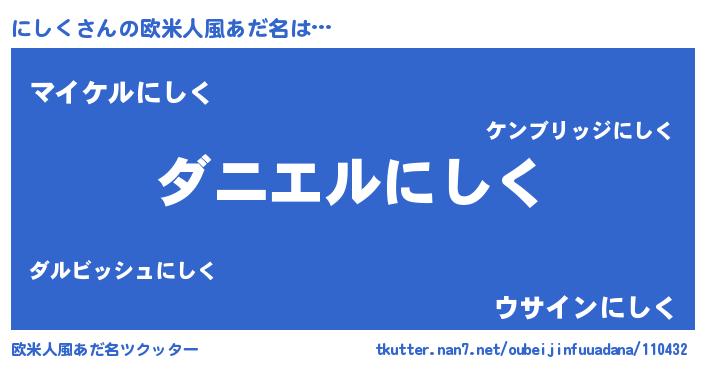 | 女子向けラノベタイトル風あだ名 | 『にしく恋絵巻』『にしく姫と円卓の騎士』 |
