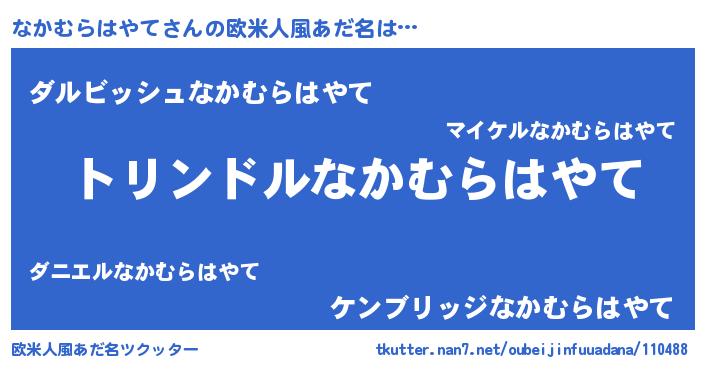 | 胡散臭い通販商品みたいなあだ名 | 『来世でも幸せになれる水素水…その名も「なかむらはやて」』 |