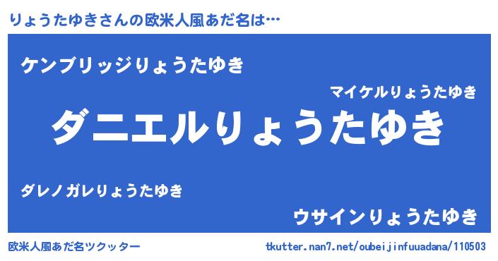 | 男性向けラノベタイトル風あだ名 | 『ノーゲーム・ノーリョウタユキ』 |